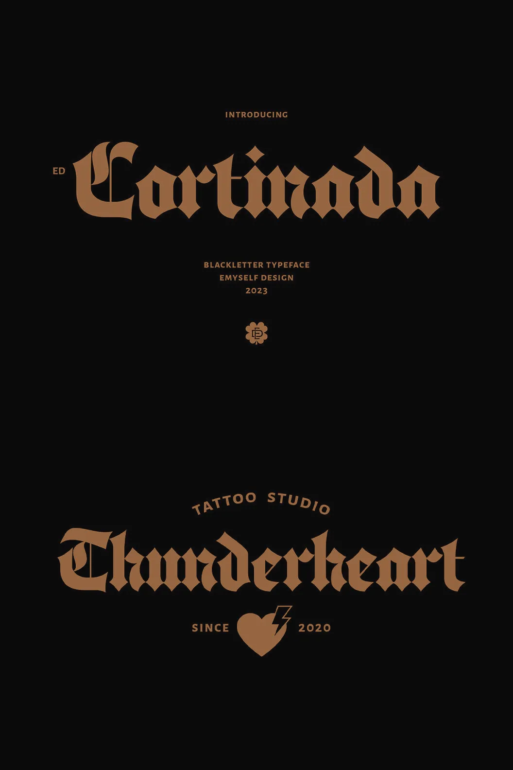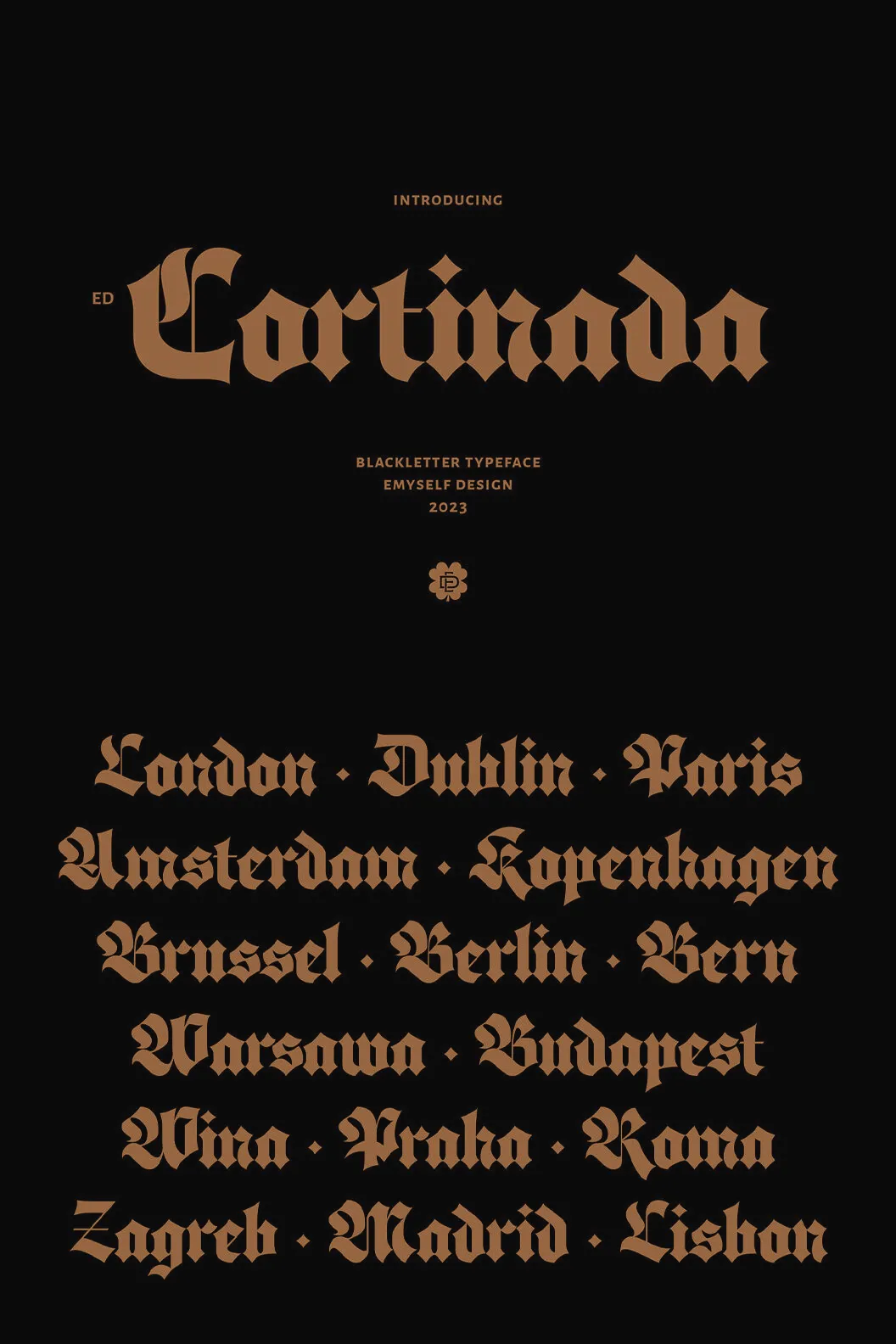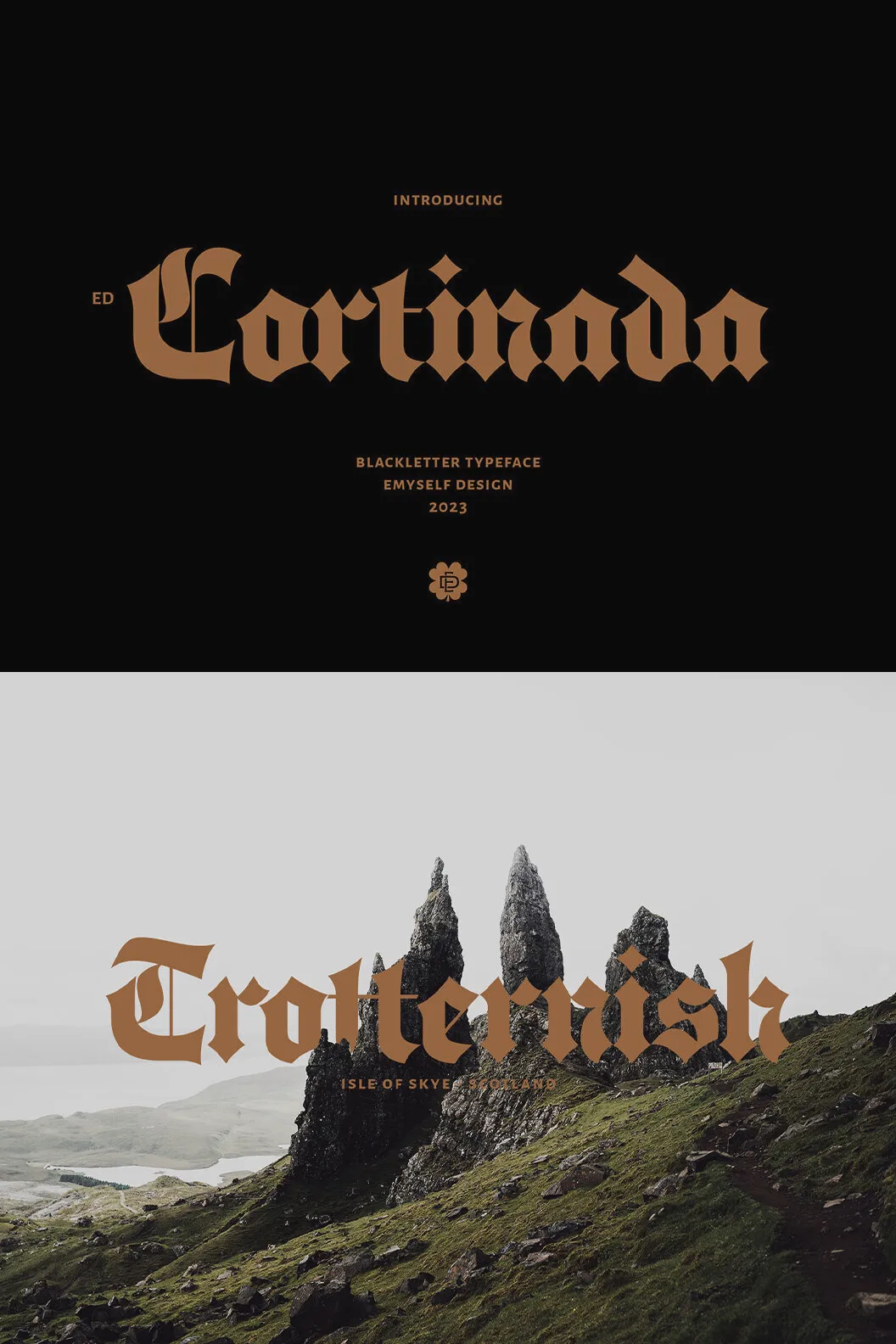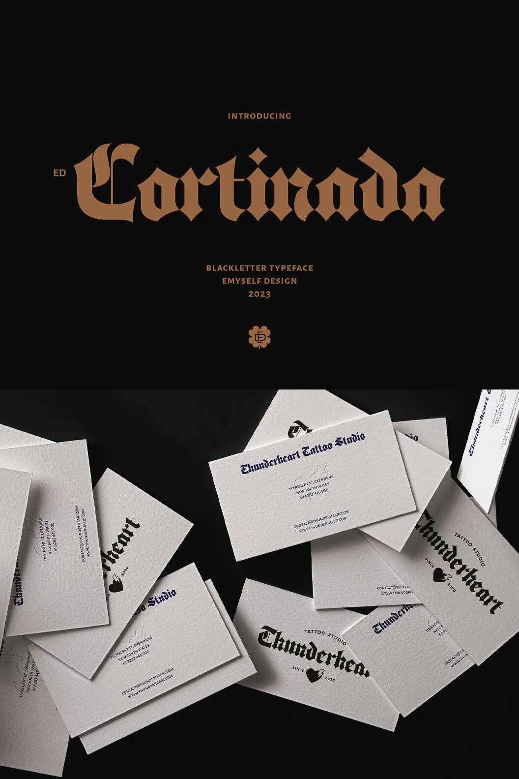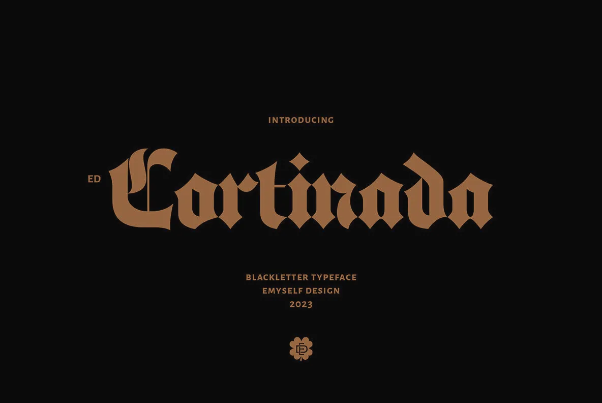 Discover ED Cortinada, a modern classic blackletter font with alternative