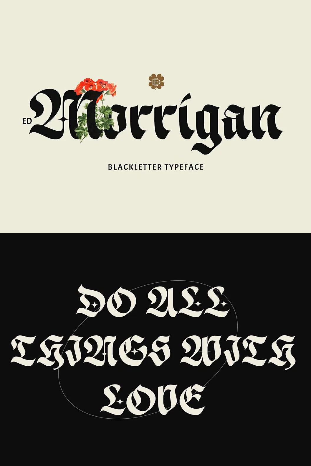 ED Morrigan FonttypesiteJanuary 31, 2024Display Discover the timeless allure of ED Morrigan, a vintage blackletter fontexuding elegance and style, complete with ligature features andmultilingual suppo…SKU T14050 Download Here