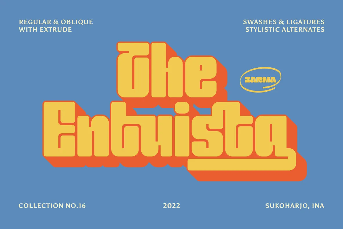Entuista FonttypesiteJanuary 29, 2024Display Step back in time with Entuista, a captivating retro font design by ZarmaType Foundry, evoking nostalgia and charm. SKU T16358 Download Here